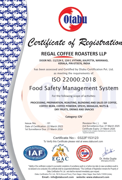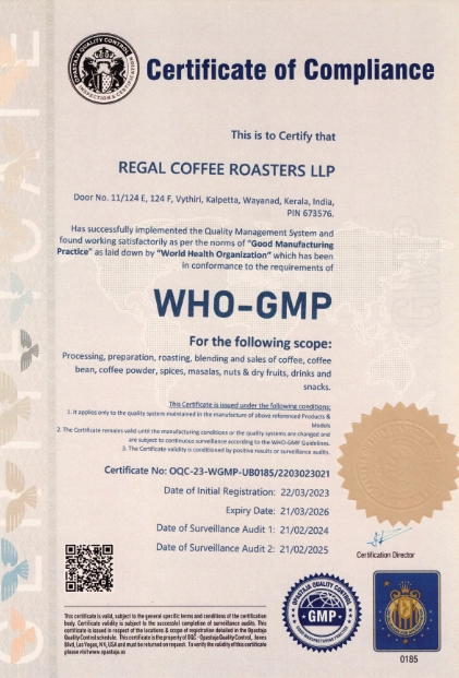 Regal Coffee Roasters is a leading coffee powder manufacturing company that has been serving coffee lovers since 1994. With three decades of expertise in the industry, we take pride in producing premium quality coffee powder that captures the essence of every coffee bean.
